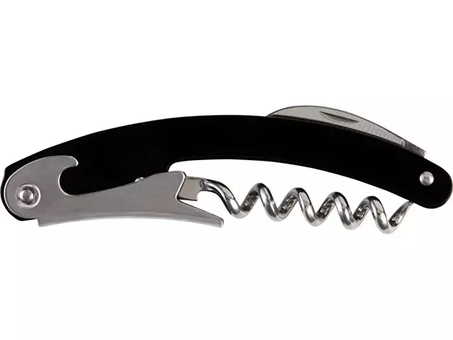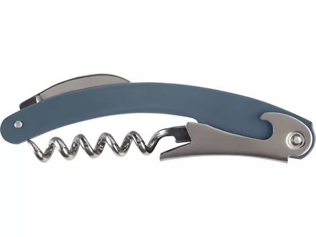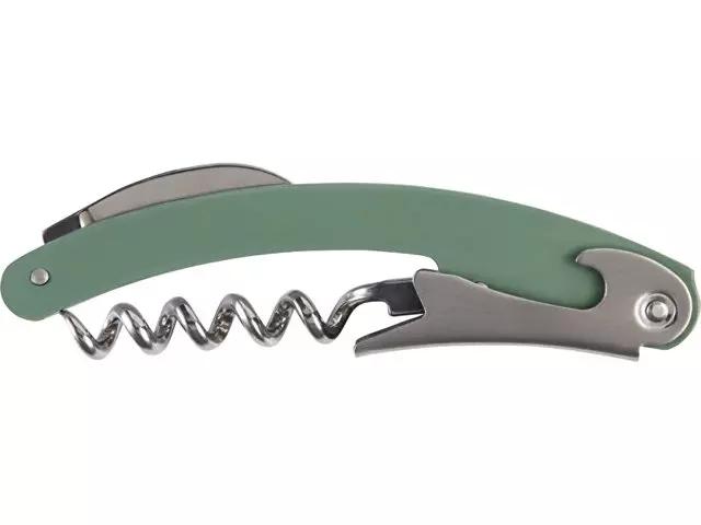 Складной нож из нержавеющей стали с цветным корпусом с обрезчиком для фольги и открывалкой для бутылок. Нержавеющая сталь.