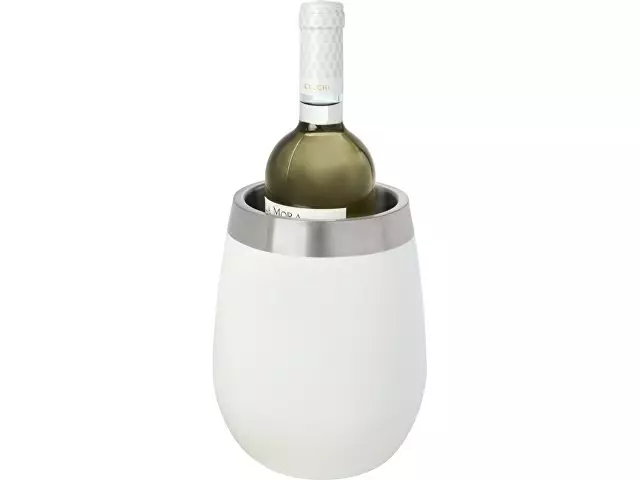 Холодильник для вина из нержавеющей стали с двойными стенками и ярким внешним покрытием. Внутренний слой из стали легко чистится и сохраняет приятный вкус прохладного вина.