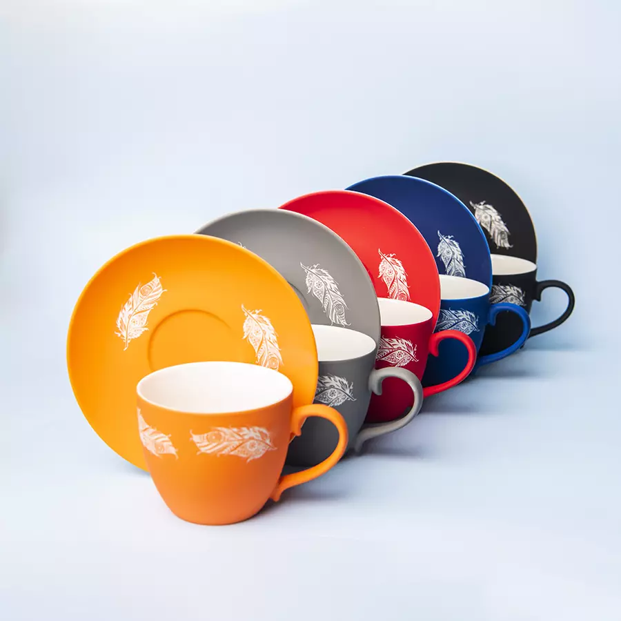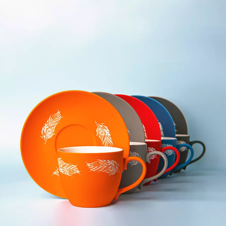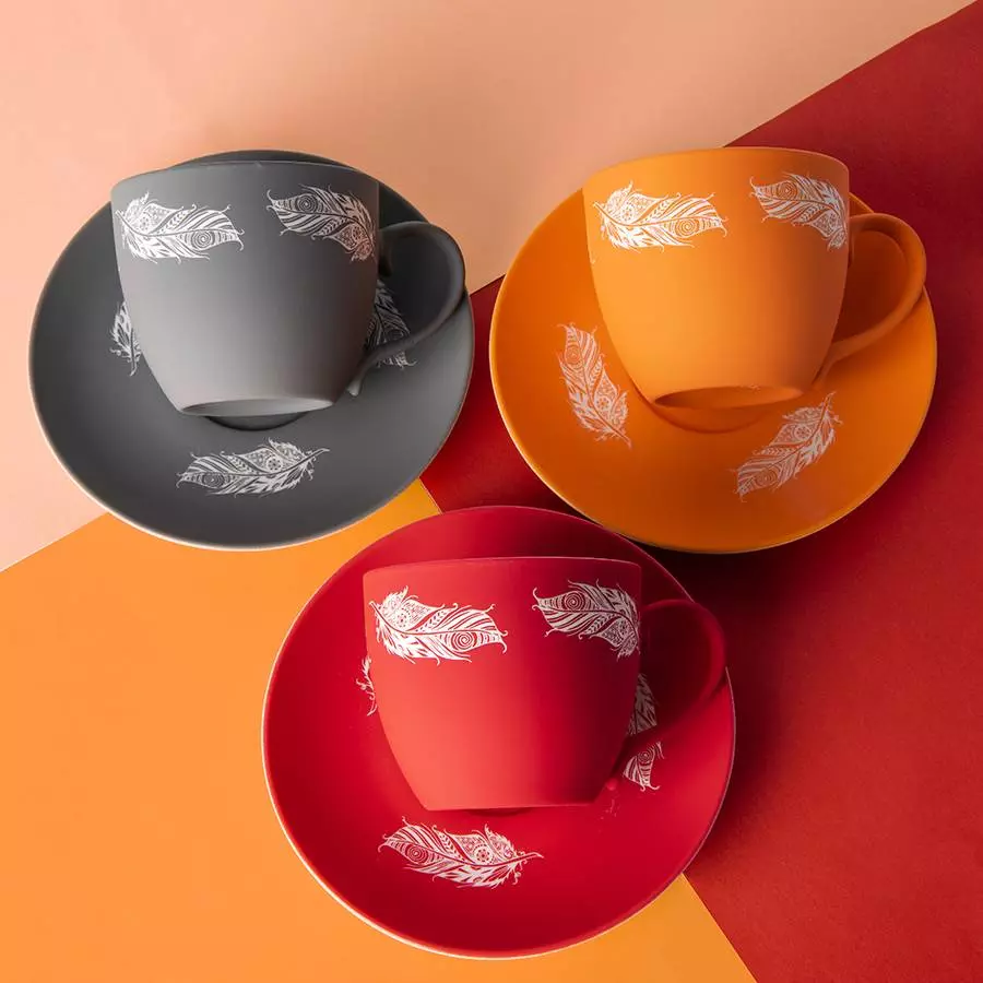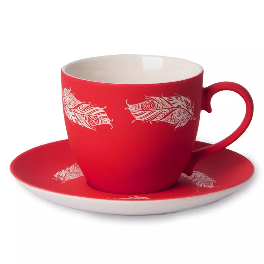Чайная пара TENDER, 250 мл, красный, фарфор, прорезиненное покрытие
