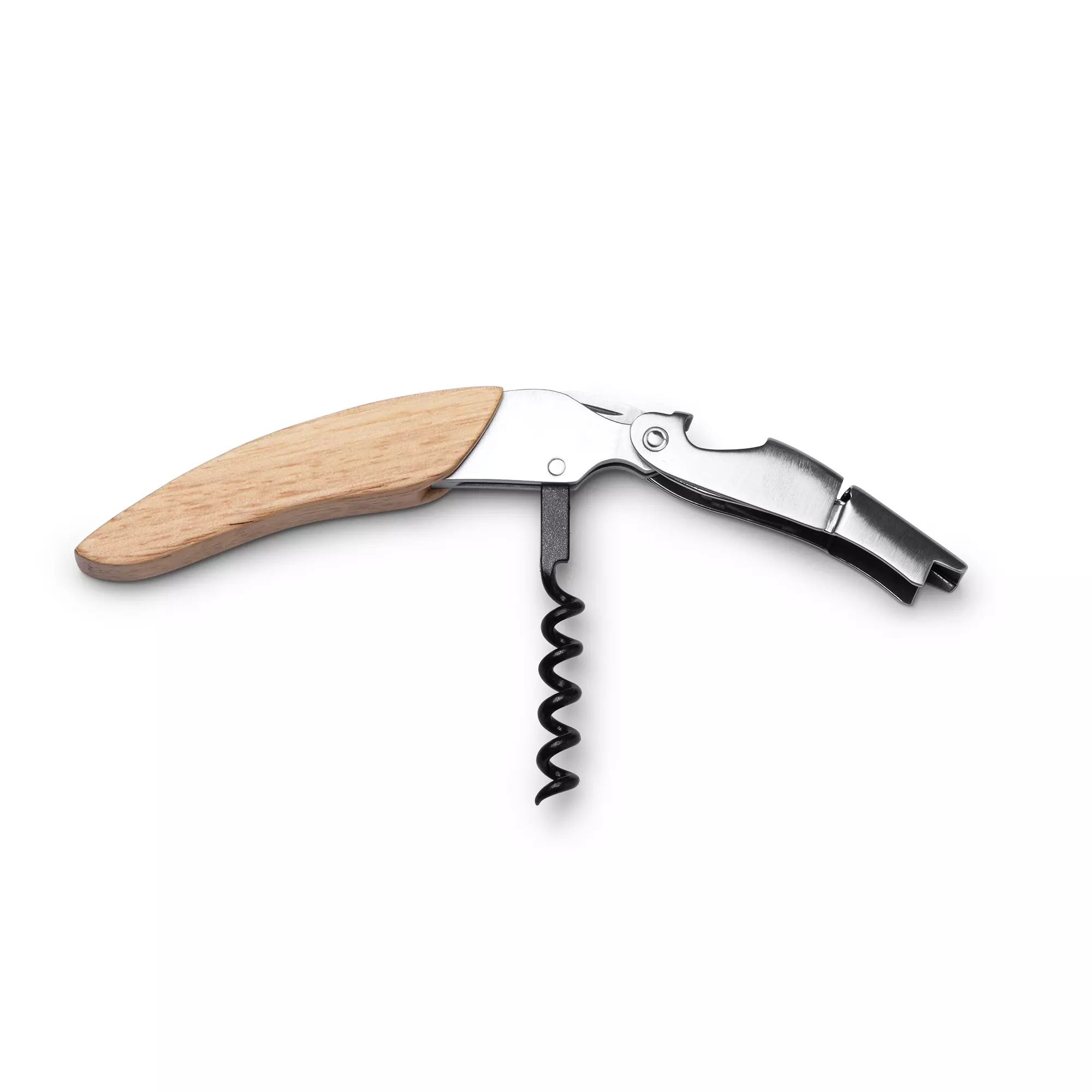 Классический штопор из нержавеющей стали с деревянной ручкой.
