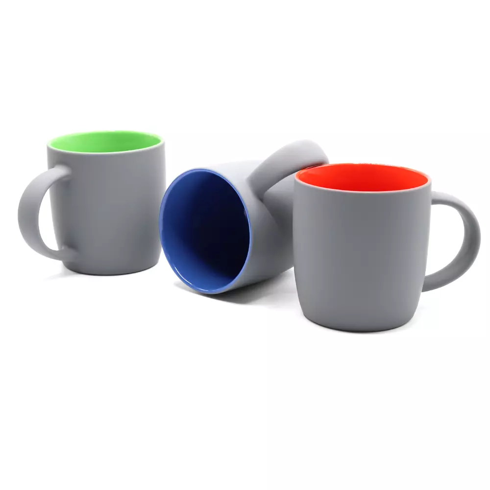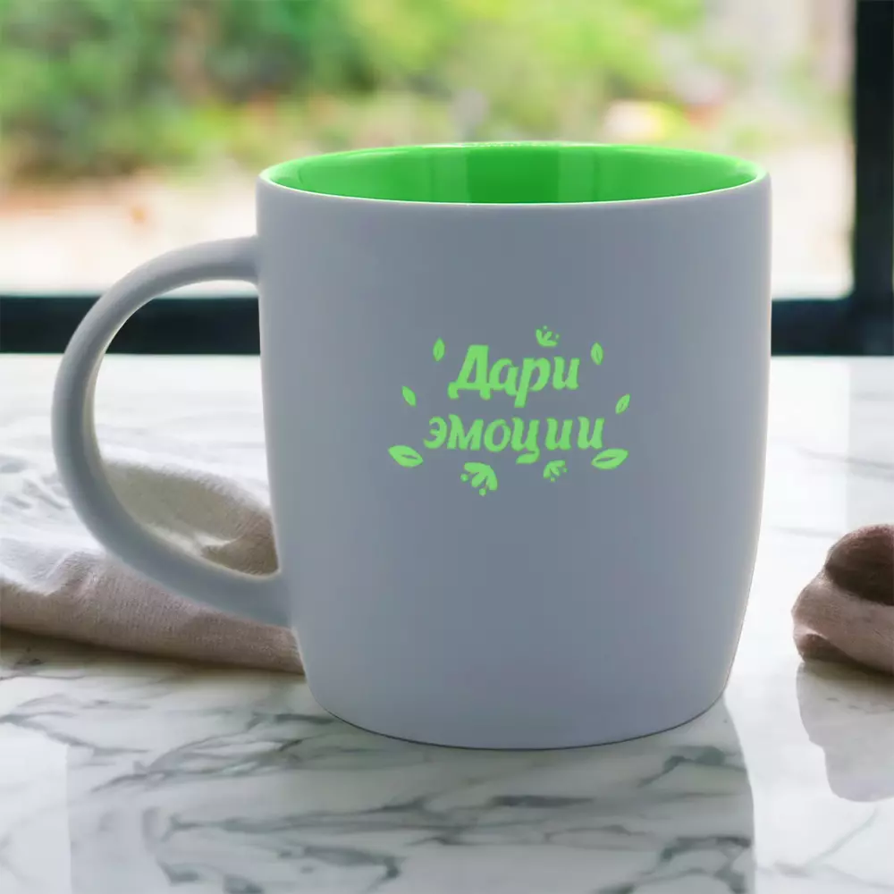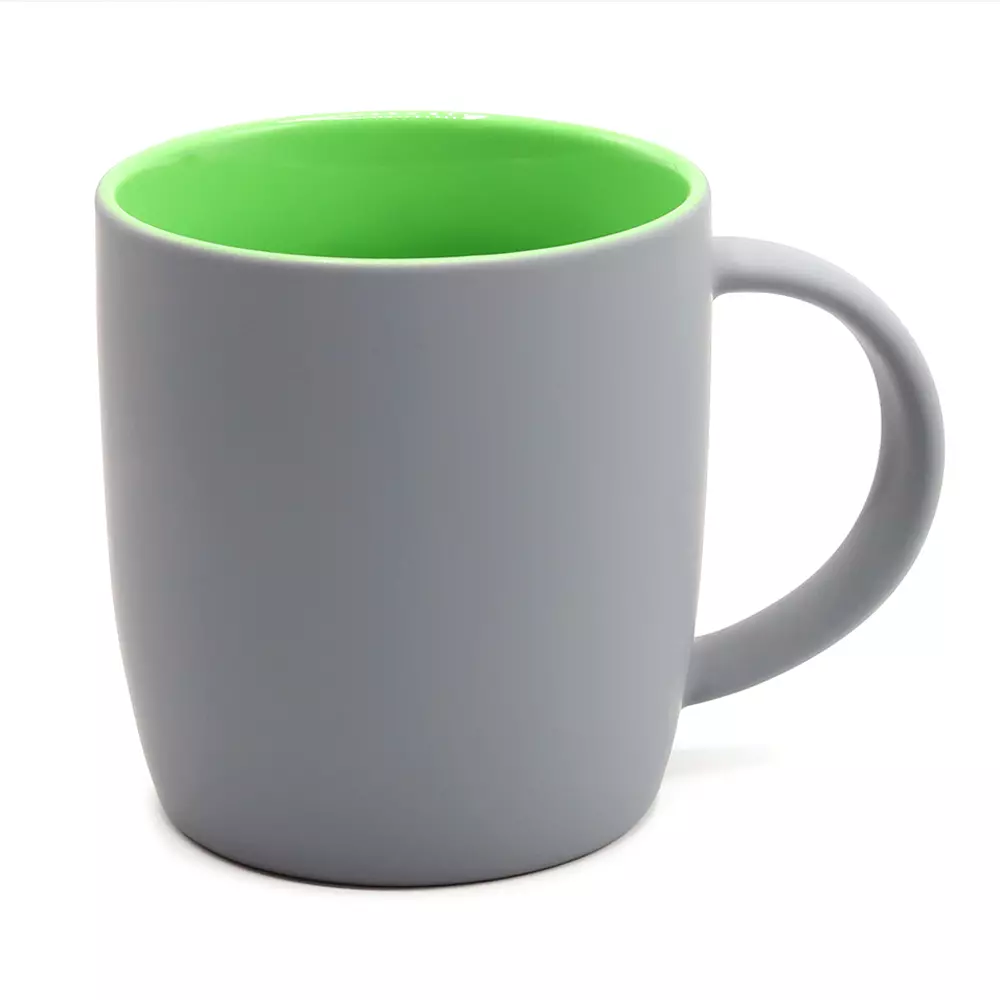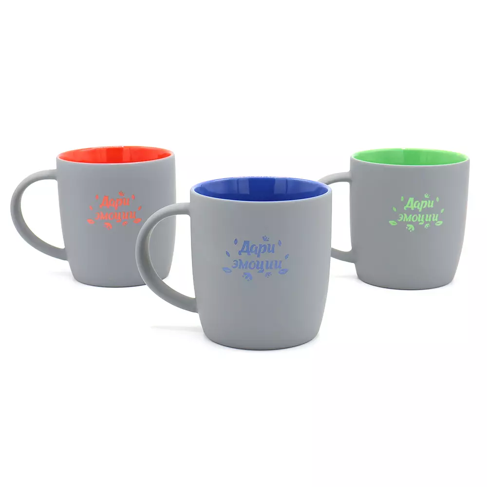 Керамическая кружка Spring объёмом 350 мл с покрытием софт-тач и яркой цветной внутренней частью будет смотреться креативно и выразительно всегда и везде! Необычняа форма кружки, шелковистая прорезиненная поверхность, удобная ручка и яркое покрытие внутри - это всё кружка Spring! В кружке Spring под покрытием софт-тач слоя нанесен слой глазури такого же цвета, что и внутри; и при гравировке вы получаете яркое цветное изображение. Цвета, близкие к пантонам - pantone Cool Gray 10 C, pantone 354C
