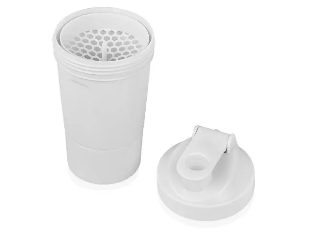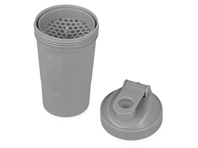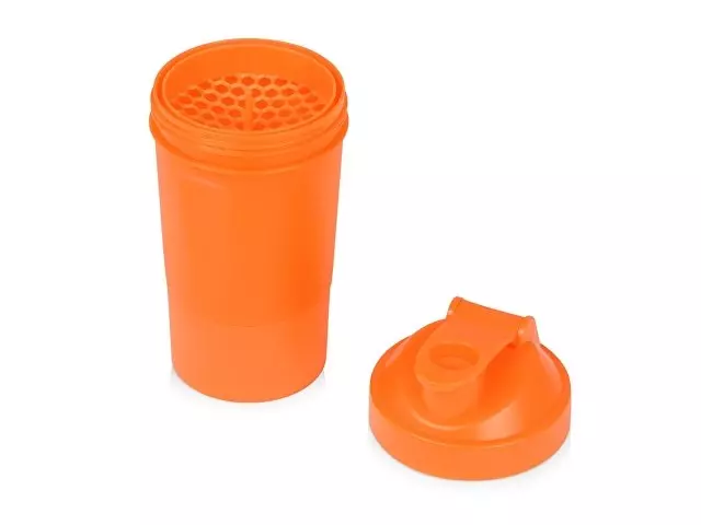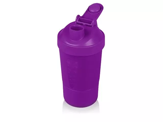 Шейкер для спортивного питания - это один из необходимых аксессуаров для спортсменов и людей, ведущих активный образ жизни. В нем можно приготовить протеиновый коктейль или фруктовый напиток. Шейкер классической формы, он удобно лежит в руке, к донышку прикручивается емкость для смешивания (таблетница), в которой можно хранить спортивные добавки: протеиновый порошок, витамины и другие концентраты. Внутри колбы имеется пластиковая сетка, чтобы процеживать спортивный напиток, а также металлический размешиватель, который растворяет порошок в напитке без комочков. Объем - 400мл. Шейкер изготовлен из пищевого пластика, он герметичен и легко моется. Шейкер имеет приятное на ощупь матовое покрытие, но подверженное незначительным дефектам (царапинам). Шейкер с нанесением - это классный и полезный спортивный подарок для коллеги, руководителя и сотрудников компании.