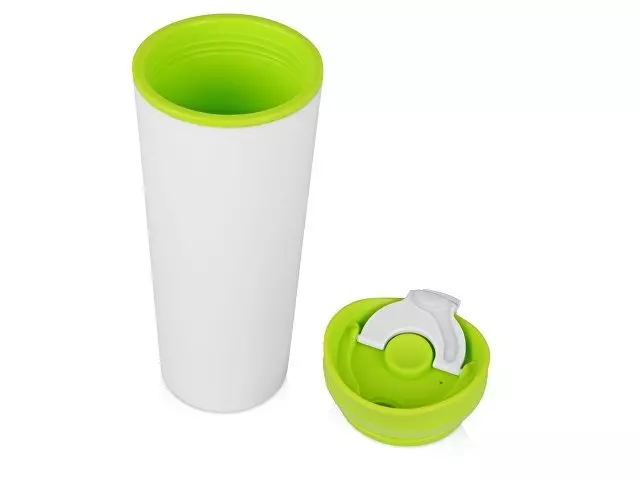 Термокружка "Brite" сразу привлечет внимание своими яркими цветами и контрастным дизайном! Двойные стенки выполнены из пластика, что существенно облегчает вес термокружки.