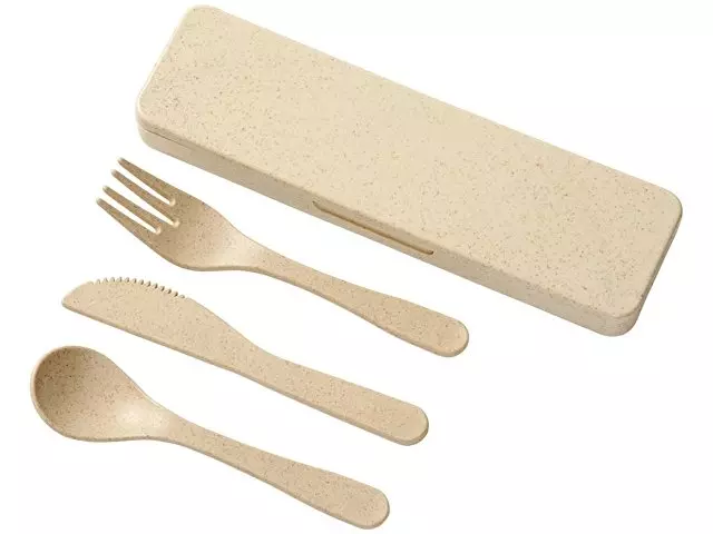 Набор столовых приборов Bamberg состоит из вилки, ножа и ложки. Они хранятся в удобном боксе, выполненном в едином стиле и цвете. Все приборы изготовлены на 50 % из бамбукового волокна и на 50 % - из полипропилена. Этот компактный и стильный набор удобно брать с собой на работу, в путешествие или на пикник.