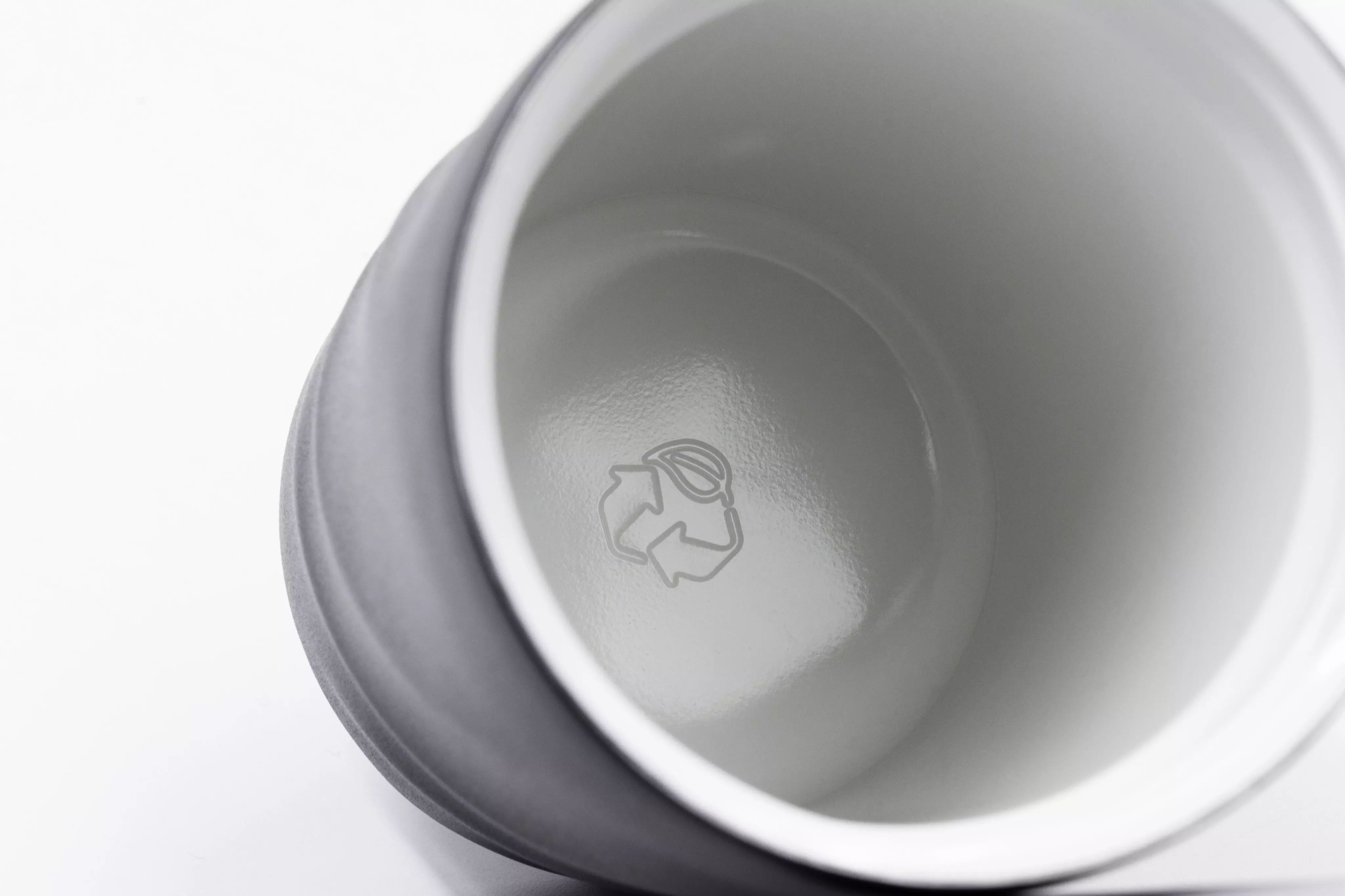 Термостакан изготовлен из переработанной нержавеющей стали без содержания BPA и имеет внутреннее керамическое покрытие, которое сохраняет естественный вкус напитков. Прозрачная крышка из прочного тритана с герметичной резьбой защищает от протечек, устойчива к высоким температурам и не бьётся. Оснащена удобной петлёй-держателем, к которой можно прикрепить наплечный ремень (не входит в комплект). Благодаря технологии изоляции Coppertech©, термостакан сохраняет температуру до 12 часов для холодных напитков, до 18 часов — со льдом и до 4 часов — для горячих. Допускается мытье в посудомоечной машине. Сертифицирован по стандарту RCS (Recycled Claim Standard). Объём: 400 мл.
