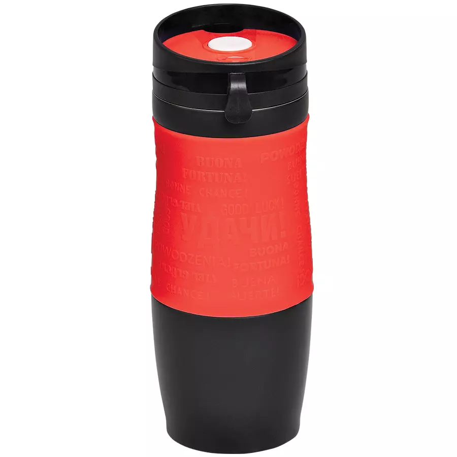 Термокружка вакуумная "УДАЧА", 400 мл, красный, металл/силикон