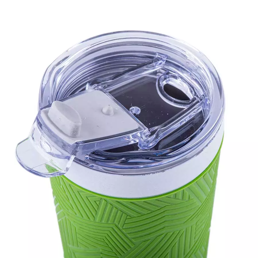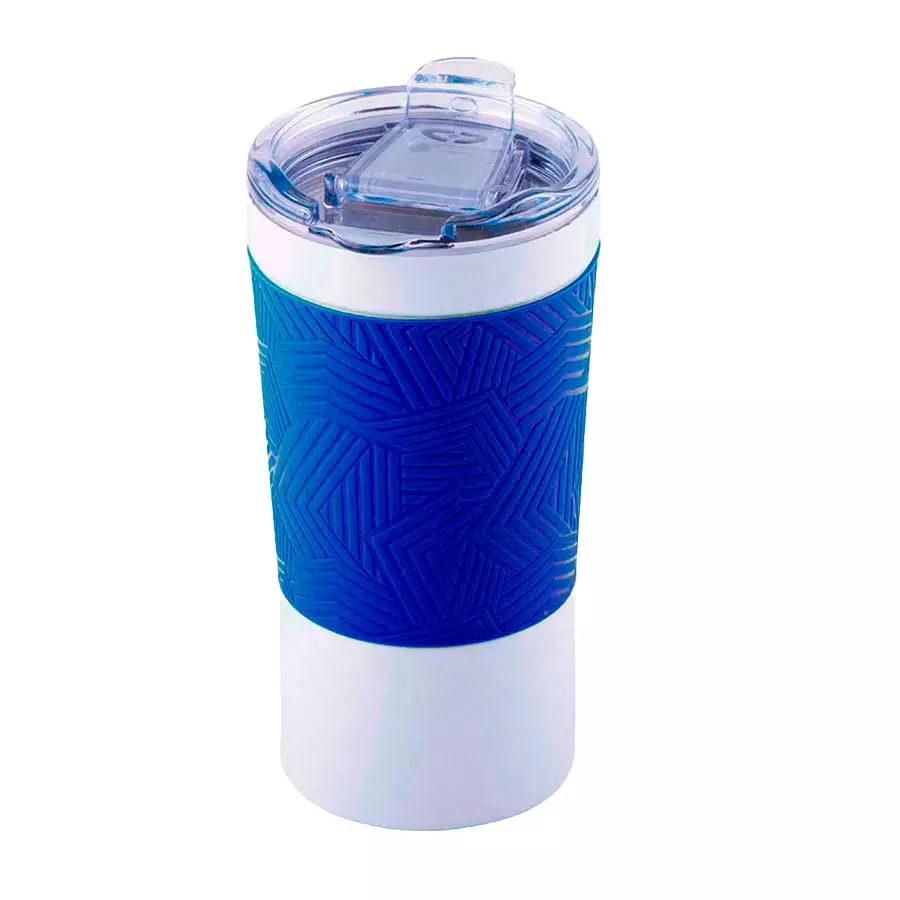 Термокружка вакуумная 'Funny" белая, голубой силикон