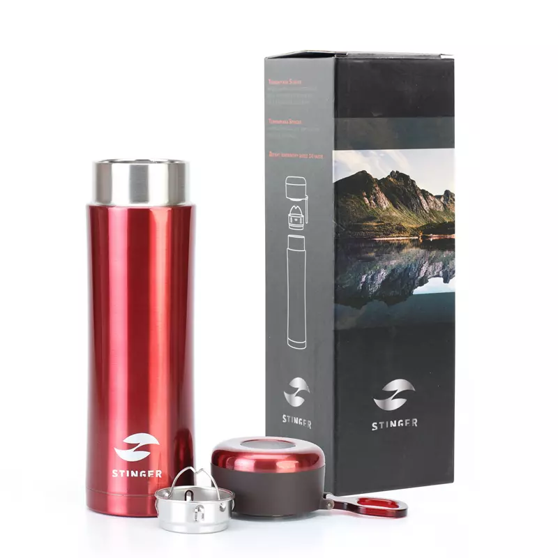 Термокружка Stinger, 0,42 л, сталь/пластик, красный матовый, с ситечком, 7,5 х 6,9 х 22,2 см