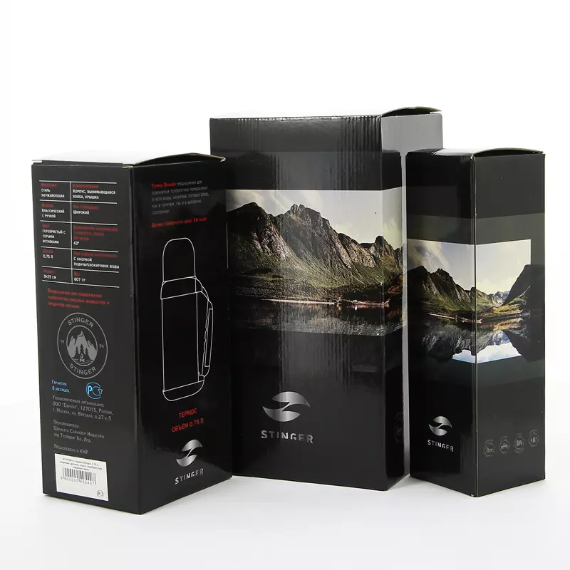 Термокружка Stinger, 0,4 л, сталь/пластик/силикон, черная, 7,2х19,4 см