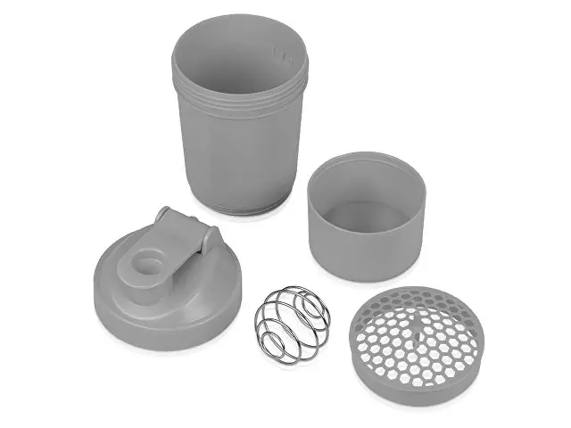 Шейкер для спортивного питания - это один из необходимых аксессуаров для спортсменов и людей, ведущих активный образ жизни. В нем можно приготовить протеиновый коктейль или фруктовый напиток. Шейкер классической формы, он удобно лежит в руке, к донышку прикручивается емкость для смешивания (таблетница), в которой можно хранить спортивные добавки: протеиновый порошок, витамины и другие концентраты. Внутри колбы имеется пластиковая сетка, чтобы процеживать спортивный напиток, а также металлический размешиватель, который растворяет порошок в напитке без комочков. Объем - 400мл. Шейкер изготовлен из пищевого пластика, он герметичен и легко моется. Шейкер имеет приятное на ощупь матовое покрытие, но подверженное незначительным дефектам (царапинам). Шейкер с нанесением - это классный и полезный спортивный подарок для коллеги, руководителя и сотрудников компании.