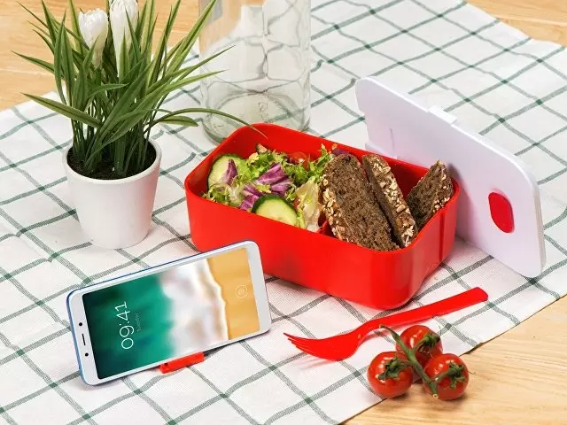 Ланч-бокс "Neo" можно брать с собой на работу, в школу, университет и командировки. Внутри прочной пластиковой емкости находятся снимаемая перегородка и вилка. Крышка с клапаном препятствует выливанию и выпадению продуктов из бокса. Ланчбокс "Neo" можно разогревать в микроволновой печи, предварительно открыв клапан на крышке. Также он имеет важную деталь, которая имеет 2 функции: закрепляет крышку на самом контейнере и заменяет подставку для телефона, что особенно понравится тем, кто привык смотреть видео или читать книги во время перекуса. Можно использовать в посудомоечной машине, микроволновой печи и в морозильной камере. Объем -1л.