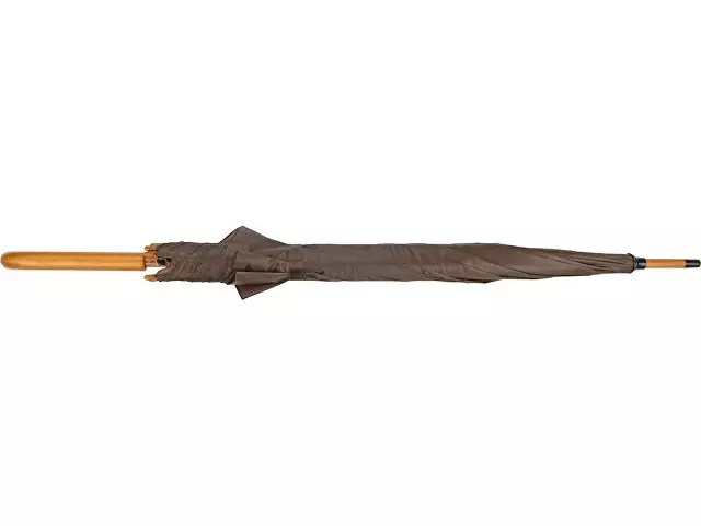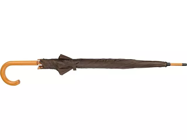 Полуавтоматический зонт-трость с деревянной ручкой выполнен из качественных материалов и устойчив к сильным порывам ветра. Яркие, сочные цвета в ассортименте. Материал позволяет нанести нужную информацию методом термотрансфера и гравировки.