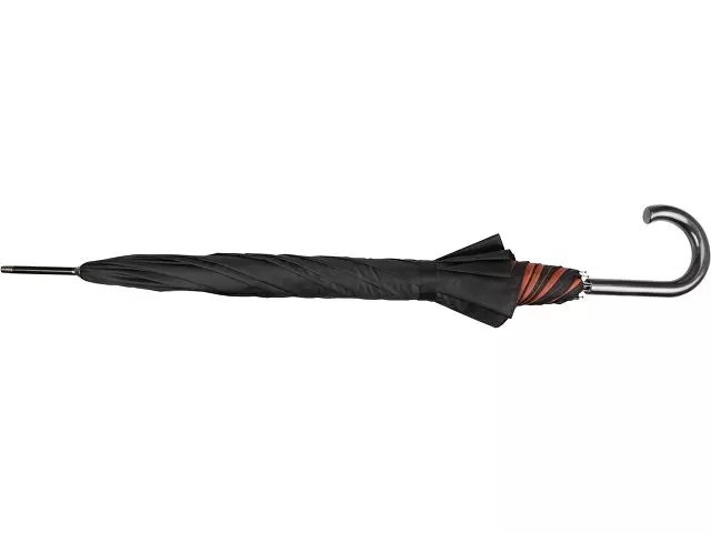 Интересный двухцветный зонт-трость спасет вас от дождя и легкого снега. Внешняя поверхность купола окрашена в черный цвет, а внутренняя имеет яркий, насыщенный оттенок, что непременно привлечет внимание. На купол зонта можно нанести логотип.