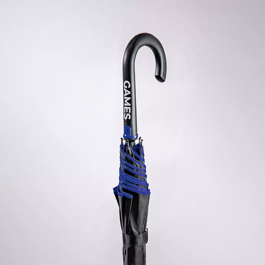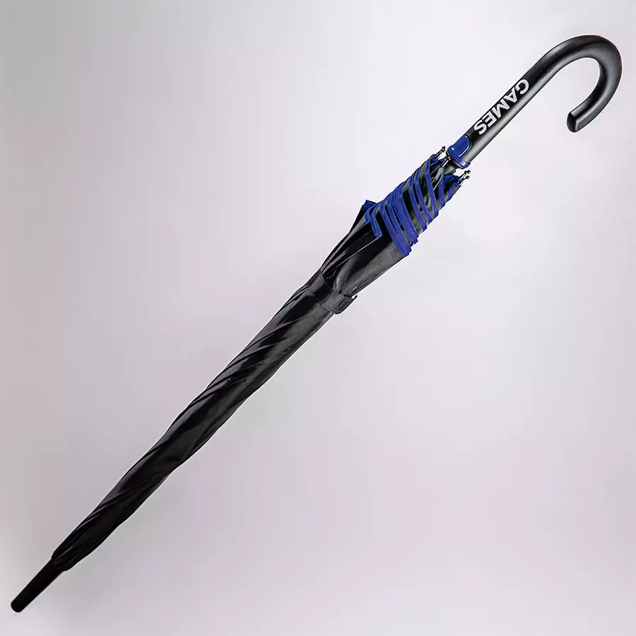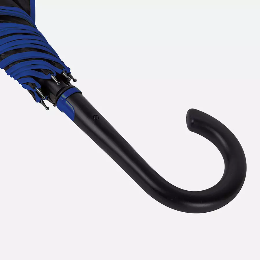 Зонт-трость "Back to black", полуавтомат, нейлон, черный с голубым