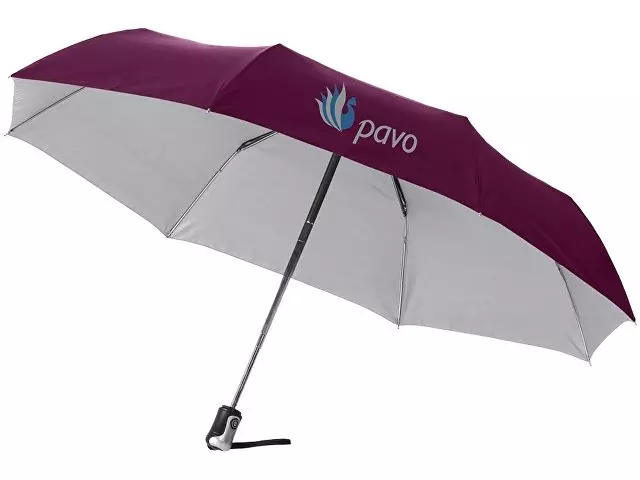 Зонт Alex трехсекционный автоматический 21,5". Зонт трехсекционный 21,5" с кнопкой автоматического включения и выключения. Металлический корпус и спицы и пластиковая ручка. В комплекте чехол. Полиэстер.