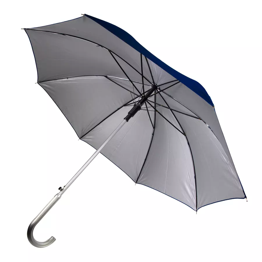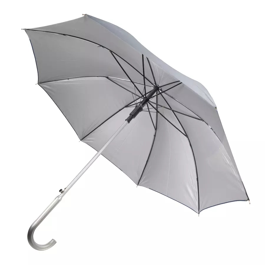 Зонт-трость с пластиковой ручкой "под алюминий" "Silver", полуавтомат, зеленый с серебром, D=103 cм, нейлон