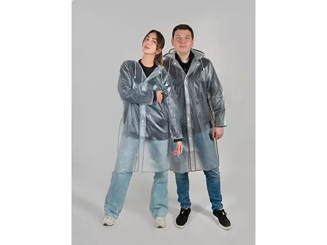 Плащ-дождевик на кнопках с капюшоном «Providence» Непромокаемый материал EVA - современный и лёгкий Удлиненная модель Прямой крой, втачной рукав Регулировка ширины рукава по низу при помощи кнопки Капюшон с козырьком и утягивающим шнуром Полупрозрачный с цветной окантовкой Складывается в компактную сумку-чехол на кнопках